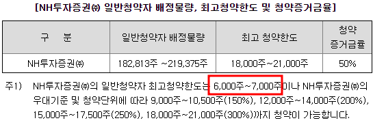키움증권의 청약한도가 100,000주가 가장 많으며 KB증권 50,000주, 이베스트증권 27,000주, 하이투자증권 18,000주, NH투자증권 6,000주이 청약한도 입니다.