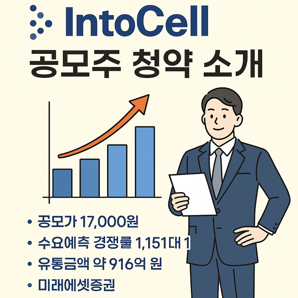 2025년 5월, 혁신적인 약물 전달 플랫폼을 보유한 인투셀이 코스닥 시장에 상장합니다. 글로벌 기술이전 성과와 바이오 핵심기술을 가진 만큼 기관 수요예측에서도 뜨거운 반응을 얻었습니다. 공모가, 상장일정, 수요예측 경쟁률, 유통물량 등 투자자가 궁금해할 정보를 정리해드립니다.🧬 인투셀은 어떤 기업인가요?인투셀(IntoCell)은 항체-약물 접합체(ADC) 기술을 기반으로 신약 개발을 하는 바이오 기업입니다. 자체 개발한 PMT(Phosphoramidate-based Masking Technology) 플랫폼과 링커 기술을 바탕으로 효율적인 약물 전달이 가능하며, 미국, 유럽 등 글로벌 빅파마와의 공동개발 및 기술이전을 추진 중입니다.💸 공모 개요 항목내용 공모가 ..