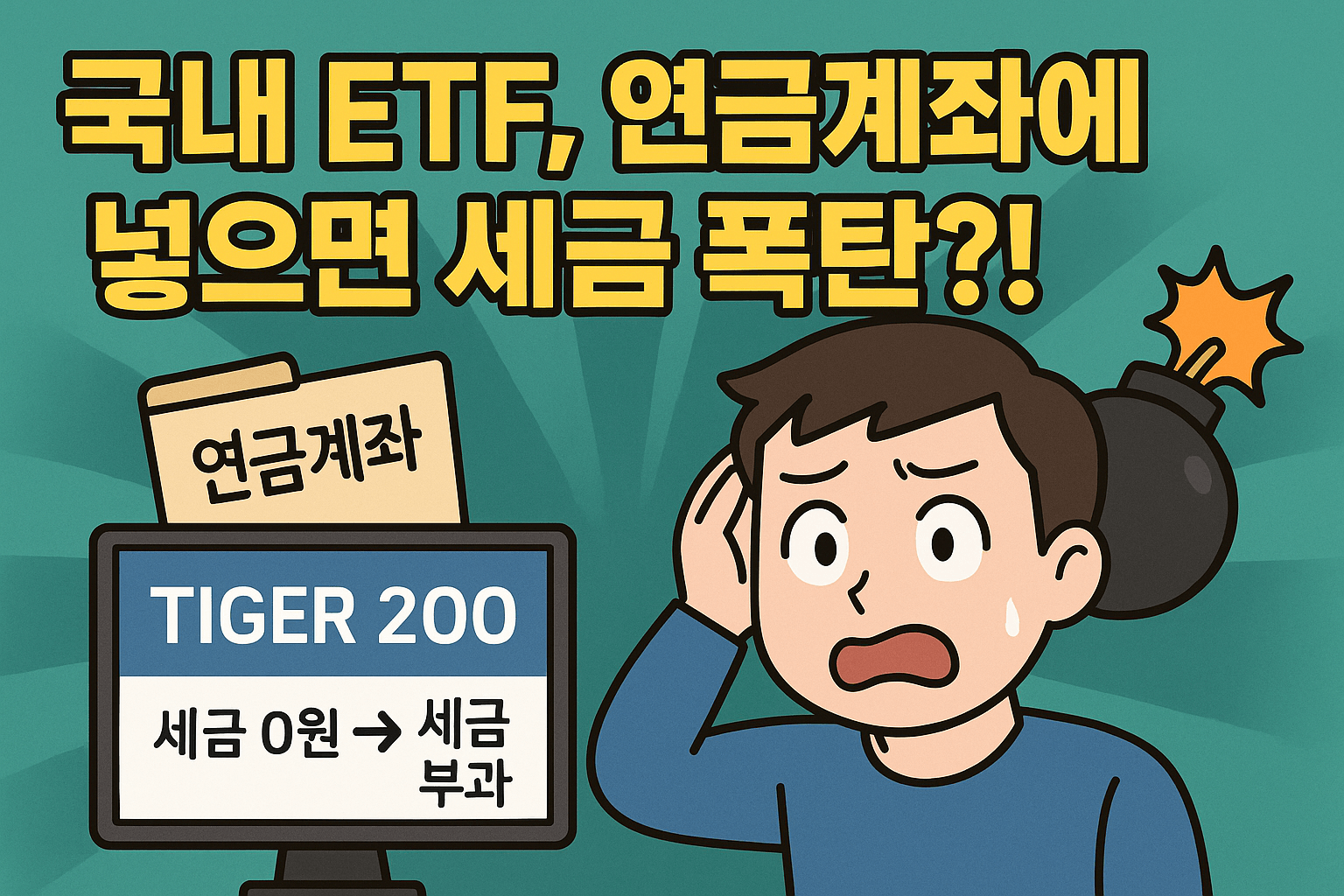 📌 연금계좌는 절세용 아닌가요?재테크를 공부하면서 가장 먼저 접하게 되는 말.바로 “절세를 원한다면 연금저축과 IRP를 활용하라!”입니다.세액공제 혜택에 매년 400만 원 ~ 700만 원까지 세금 환급도 받을 수 있고,장기적으로 투자한 수익에 대해서도 저율 과세 혜택까지 주어지니그야말로 “세테크의 꽃”이라 불릴 만큼 매력적인 계좌죠.그런데…이 연금계좌에도 절대 넣으면 안 되는 ETF가 있습니다. ❗ 국내주식형 ETF, 연금계좌에서 사면 안 되는 이유국내 주식형 ETF는일반 과세 계좌에서 보유할 경우 매매차익에 대해 비과세 혜택이 있습니다.즉, 사서 팔아 이익이 나도 세금을 내지 않습니다.대표적인 예시는 다음과 같습니다.KODEX 200, TIGER 200 (코스피200)KODEX 코스닥150KBSTAR..
