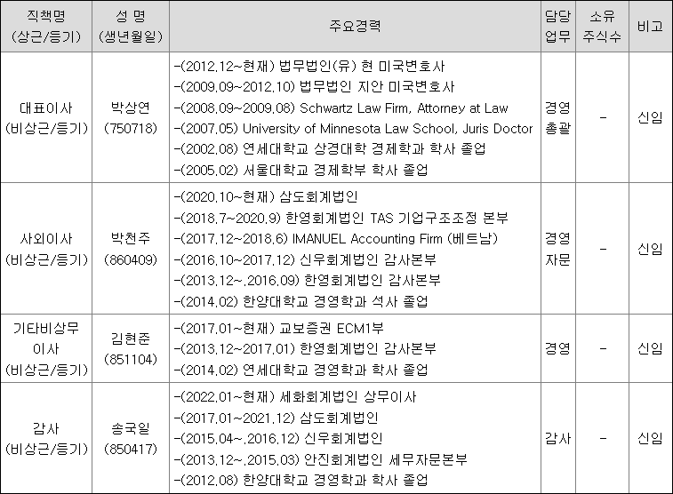 경영진의 M&A 및 IPO등 관련 주요 경력사항