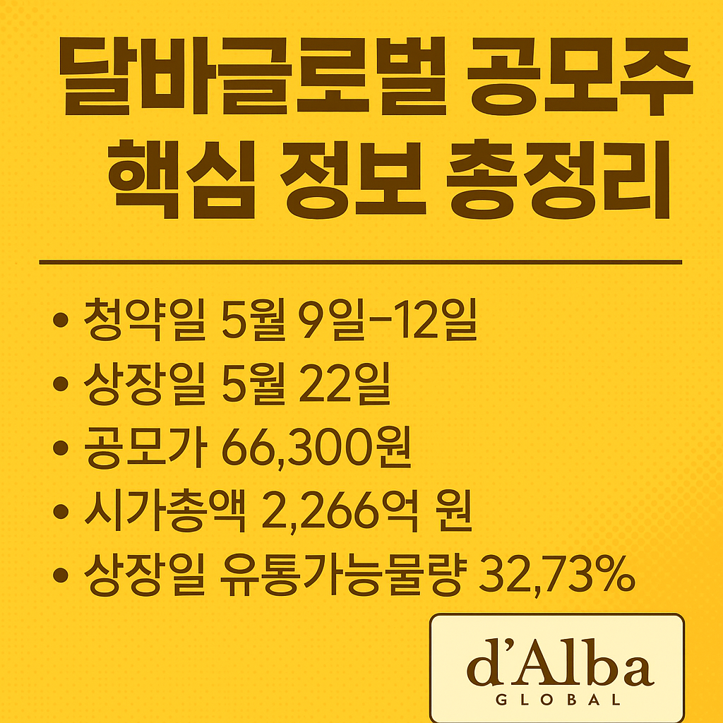 프리미엄 K-뷰티 브랜드 '달바'를 운영하는 달바글로벌이 코스피 상장을 앞두고 있습니다. 이번 공모주는 브랜드 가치와 실적 성장성을 겸비한 투자 기회로 주목받고 있는데요. 청약 일정부터 수요예측 결과까지, 투자자분들이 꼭 알아야 할 핵심 정보를 정리해 드립니다.