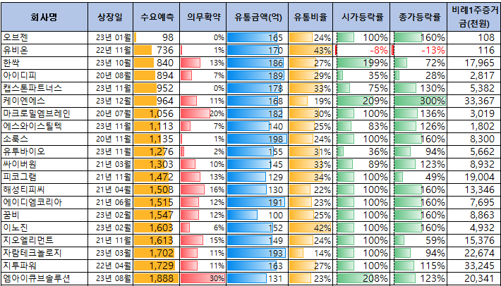 스튜디오삼익의 수요예측 결과는 966이며 유통가능 금액은 188억입니다. 2020년부터 현재까지 유통금액 100억원~200억사이 종목 골라보니 총20개 종목이 있었으며 이들 상장일 시가 평균 101%였습니다. 대부분 수익을 주었으며 유일하게 22년1월에 상장한 유비온만 마이너스 수익을 기록했습니다. 공모주 시장상황도 좋고 특별한 이슈가 없다면 스튜디오삼익도 수익을 줄것으로 예상됩니다. 모두 수익내시길 바라겠습니다.