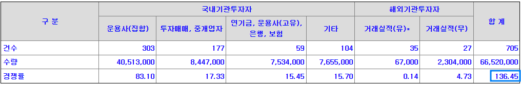 기관 수요예측 경쟁률은 136:1이며, 참여기관은 705개의 기관이 참여했습니다.