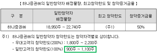 하나증권의 청약한도