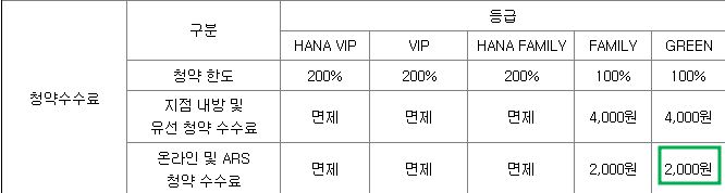 수수료 및 청약한도