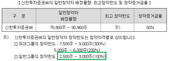 신한투자증권의 청약한도
