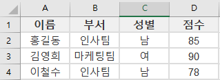 =SUMIFS(D2:D4, B2:B4, "인사팀", C2:C4, "남")