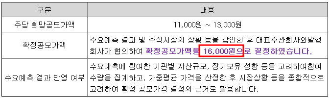 - 확정공모가 : 16,000원