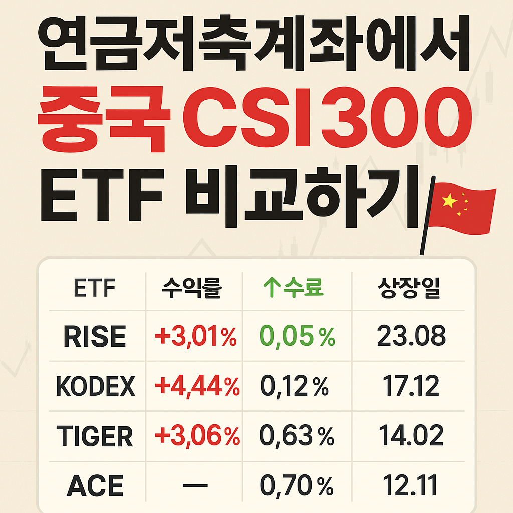 오늘은 실제 데이터를 바탕으로 4개의 CSI300 ETF를 비교해보고, 연금저축계좌에 담기 좋은 ETF를 골라보는 시간을 가져보겠습니다.