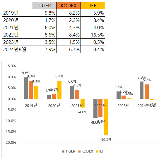 미국채10년 ETF : 수수료는 KODEX보다 2배 비싸지만 수익률이 좋은 Tiger를 선택.