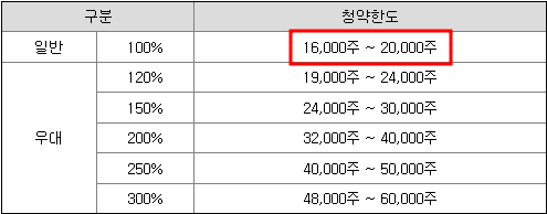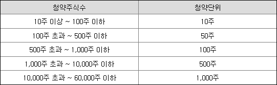 | 청약수수료 | 최소청약주수 | 최대청약주수 |