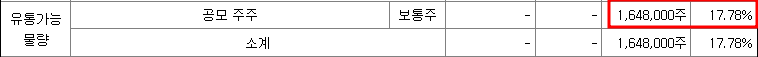 유통가능 물량은 공모주주인 17.78%이며 기존주주의 유통가능 물량은 없습니다. 희망공모가 상단기준 유통가능 금액은 81억 원입니다.