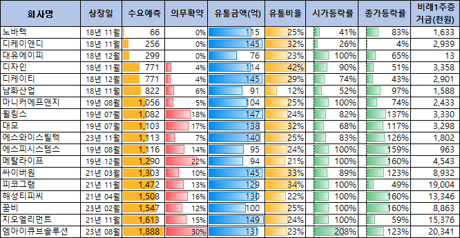 우진엔텍 수요예측 결과가 나왔습니다. 수요예측결과는 1,263이며 의무보유확약은 17.01%입니다. 비슷한 수요예측과 유통금액을 가진 공모주의 상장일 성과를 마지막 결론에 표로 작성해 두었습니다. 마지막까지 꼭 보셔서 공모주 청약에 활용하시기 바랍니다.