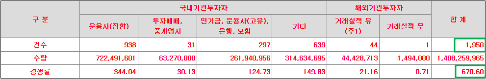 기관 수요예측 경쟁률은 670:1이며, 참여기관은 1,950개의 기관이 참여했습니다.