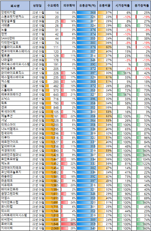 | 종목명 | 기관 경쟁률 | 의무확약 |