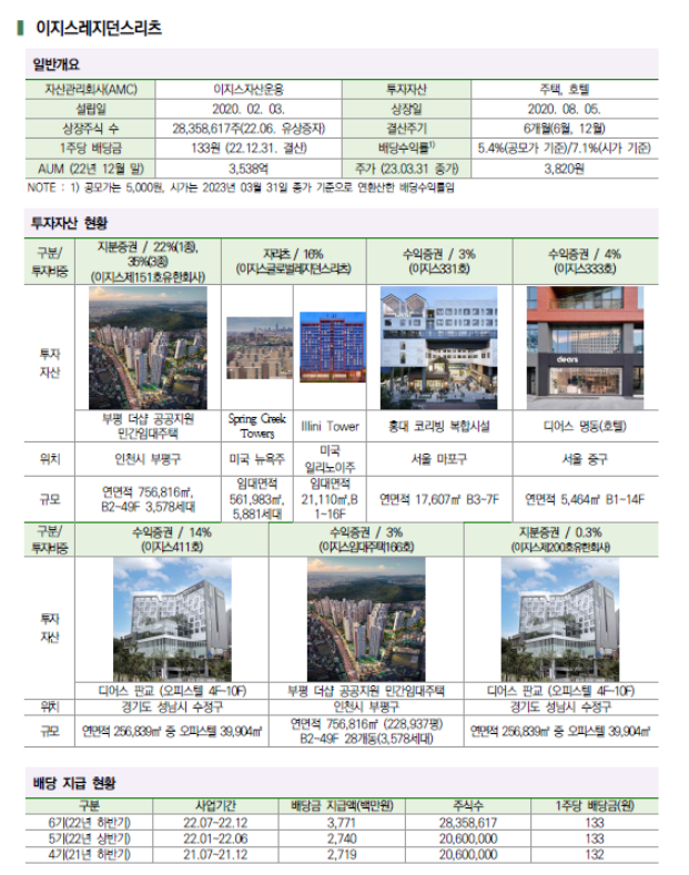 이지스레지던스리츠 자산현황 바로보기!👉