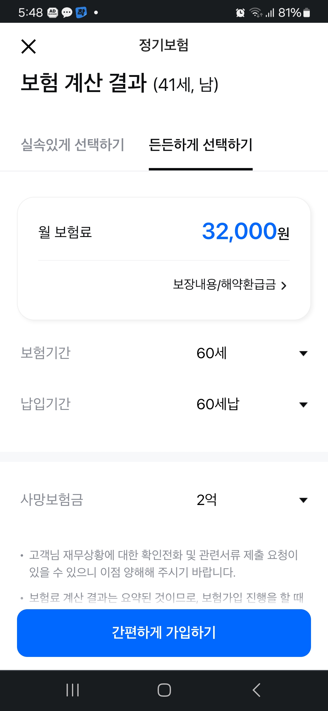 41세 남성이 60세까지 2억원을 보장받는 정기보험료는 일반적으로 3만원 초반대이며 슈퍼 건강한 사람은 15,800원으로 보험에 가입할 수 있는 것을 확인할 수 있었습니다.  건강할 때 얼릉 가입 해야 겠습니다.~