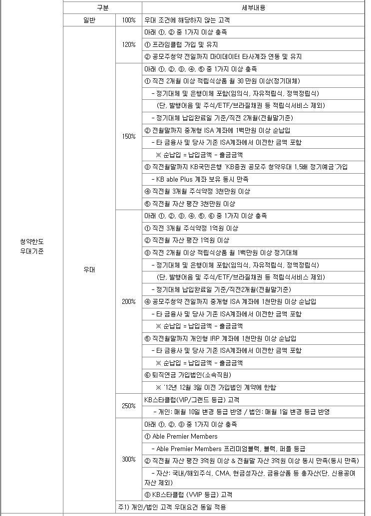 1. 청약한도 100% : 우대고객이 아닌 고객