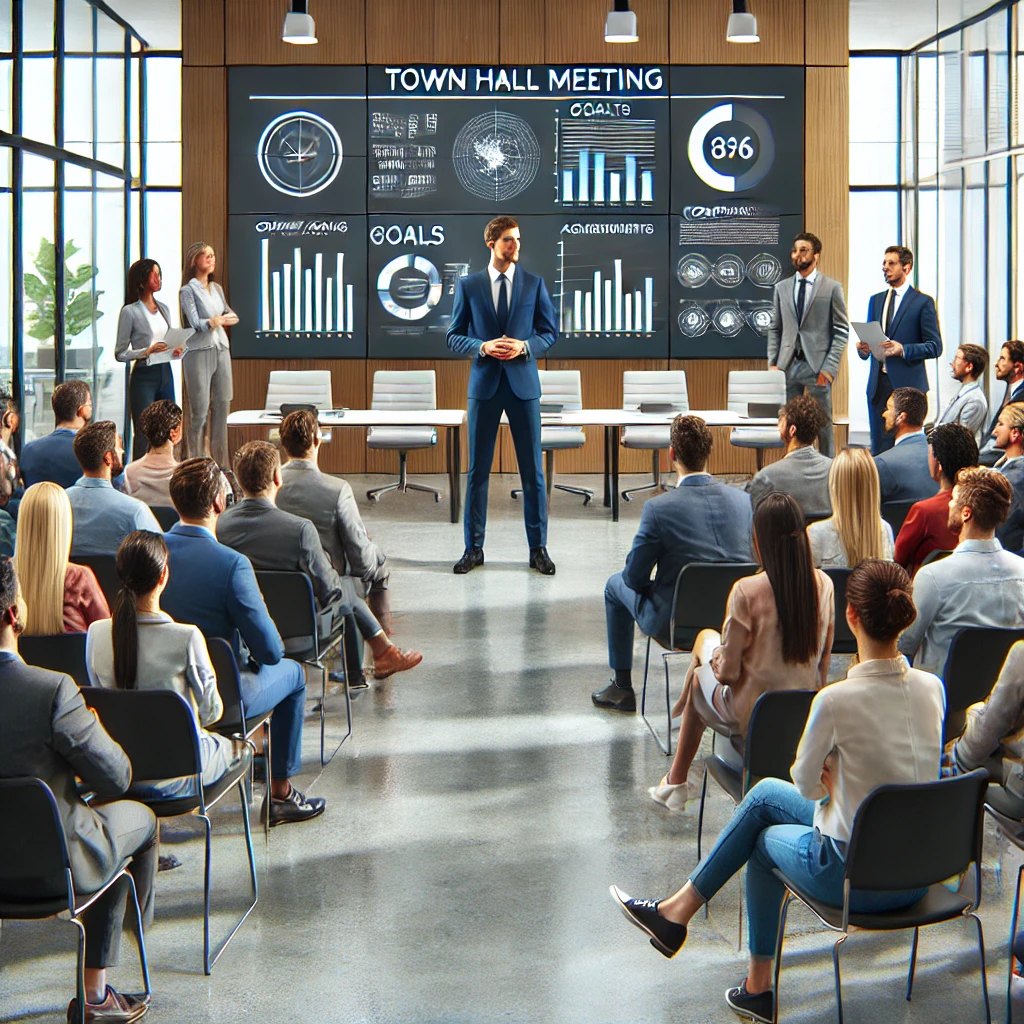 타운홀 미팅(Town Hall Meeting)은 조직 내에서 구성원들이 자유롭게 의견을 공유하고, 경영진과 소통할 수 있도록 마련된 회의 방식입니다. 주로 기업, 공공기관, 학교 등에서 활용되며, 구성원들의 피드백을 듣고 조직의 방향성을 공유하는 중요한 역할을 합니다.
