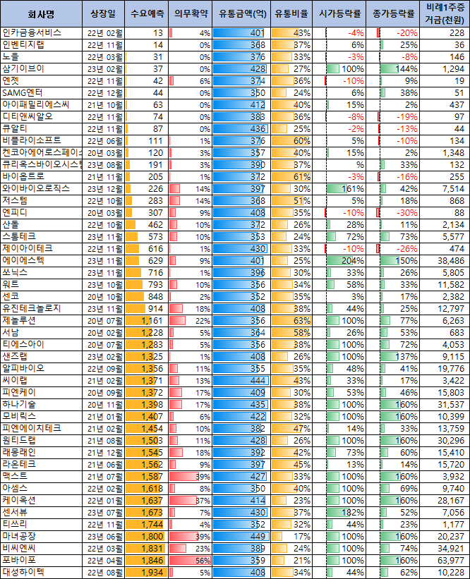 | 모집금액 | 수요예측 | 유통금액 |