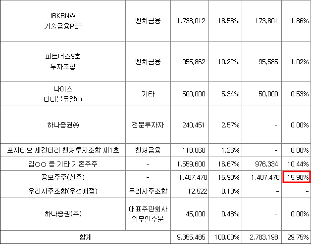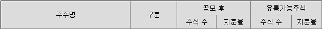 최대주주는 개인이며 총 24.1%지분율을 가지고 있습니다. 최대주주가 상장기업인 경우 공모주의 기대감에 따라 최대주주의 주가가 급격히 상승하는 경우가 있습니다 필옵틱스와 LS머티리얼즈 상장 사례에서 확인할 수 있습니다. 최대주주가 상장기업인 경우 모기업의 주가상승에서도 수익을 낼 수 있으니 잘 살펴보시기 바랍니다.