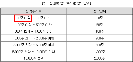 | 청약수수료 | 최소청약주수 | 최대청약주수 |