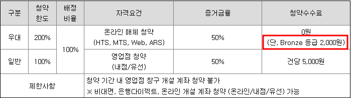 수수료 및 청약한도