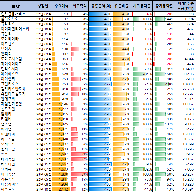 | 종목명 | 기관 경쟁률 | 의무확약 |