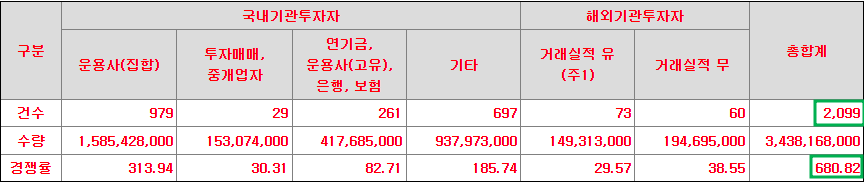 기관 수요예측 경쟁률은 680:1이며, 참여기관은 2,099개의 기관이 참여했습니다.