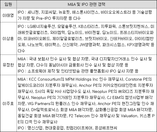 경영진의 M&A 및 IPO 등 관련 주요 경력사항
